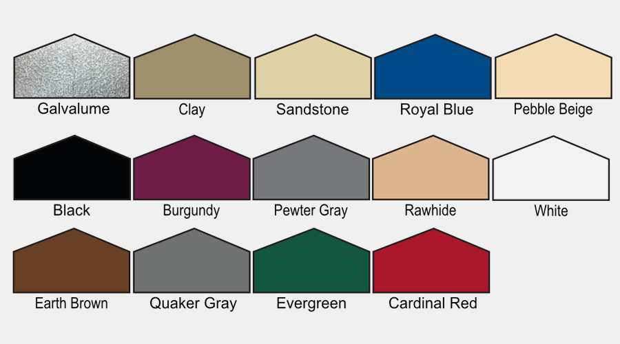 With 14 color options [including dark shades, neutrals, and light tones], you can select and match a carport, barn, or garage with an existing property to boost its appeal. You can choose separate colors for the roof, trim, gable ends, side walls, and deluxe [wainscot].